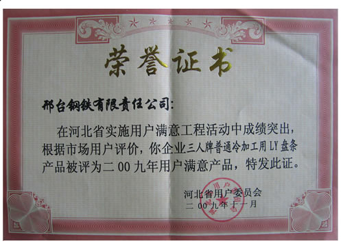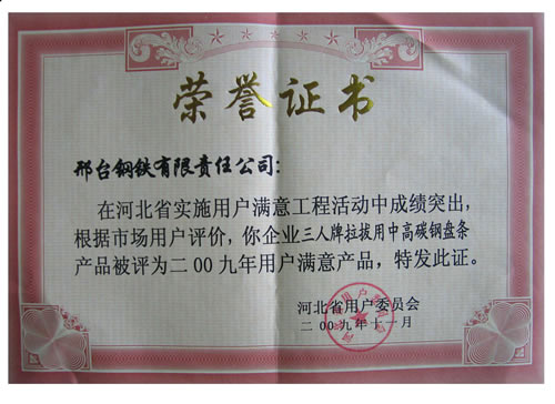 The Customer Satisfied Product of Hebei of medium and high carbon wire of Three Person Brand on 2009.