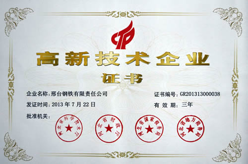 2013年7月20日,邢鋼榮獲2013年“河北省百?gòu)?qiáng)企業(yè)”榮譽(yù)稱號(hào)。