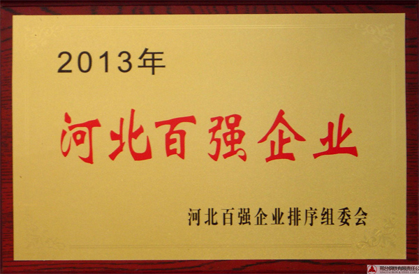 - 邢鋼榮獲2013年“河北省百?gòu)?qiáng)企業(yè)”榮譽(yù)稱號(hào)