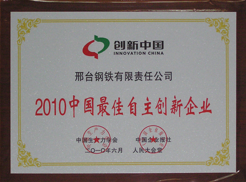 邢鋼榮獲“2010中國最佳自主創(chuàng)新企業(yè)”稱號