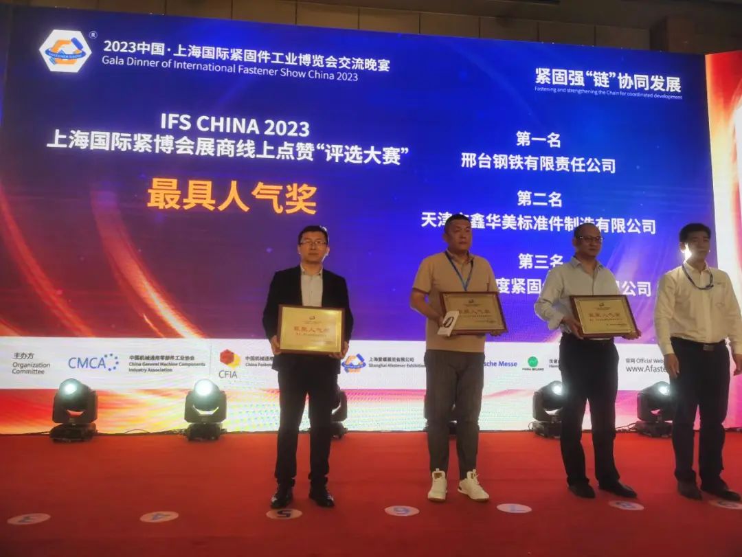 5月22日獲悉,在2023中國上海國際緊固件工業(yè)博覽會上,邢臺鋼鐵有限責(zé)任公司榮獲IFS CHINA 2023 上海國際緊博會展商線上點贊“評選大賽”第一名,獲得“最具人氣獎”獎項,并被授予獎杯及證書。