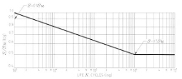 對(duì)很多金屬已經(jīng)進(jìn)行了大量的疲勞試驗(yàn)。從這些試驗(yàn)中,已經(jīng)開(kāi)發(fā)出拉伸強(qiáng)度和循環(huán)次數(shù)的曲線圖。鍛鋼的一個(gè)例子如圖1所示。 在這個(gè)對(duì)數(shù)記錄圖上的垂直坐標(biāo)標(biāo)示出了施加的應(yīng)力與鋼的極限拉應(yīng)力“SU”的比例,而橫坐標(biāo)是應(yīng)力循環(huán)至失效的次數(shù)。SN曲線的左側(cè)表明,在高循環(huán)載荷下的鋼件產(chǎn)生的應(yīng)力占了拉伸強(qiáng)度的較大比例,在一定數(shù)量的循環(huán)之后就會(huì)失效。SN曲線的右側(cè)表明,如果循環(huán)應(yīng)力保持在可定義的極限以下,則部件將具有無(wú)限的壽命。曲線還告訴我們,如果一個(gè)鋼件只有一個(gè)加載周期,其應(yīng)力大于其拉伸強(qiáng)度,則該鋼件將失效(如當(dāng)一個(gè)小螺栓如果擰緊時(shí)斷開(kāi))。如果施加的應(yīng)力是拉伸強(qiáng)度的90%或更多,它也會(huì)在小于一千個(gè)周期內(nèi)失效。但如果應(yīng)力保持在抗拉強(qiáng)度的一半以下,它就不會(huì)疲勞。
