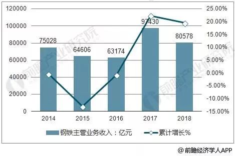 據(jù)前瞻產(chǎn)業(yè)研究院發(fā)布的《中國(guó)鋼鐵行業(yè)發(fā)展前景與投資戰(zhàn)略規(guī)劃分析報(bào)告》指出,2018上半年中國(guó)鋼鐵行業(yè)主營(yíng)業(yè)務(wù)收入達(dá)到30525億元,累計(jì)增長(zhǎng)15.8%。回顧2012-2017年鋼鐵行業(yè)營(yíng)業(yè)收入情況:近六年來(lái),我國(guó)鋼行業(yè)營(yíng)業(yè)收入較為穩(wěn)定,2015年以來(lái)累計(jì)增長(zhǎng)率逐漸回暖。中國(guó)鋼鐵行業(yè)將繼續(xù)保持穩(wěn)中有長(zhǎng)趨勢(shì),預(yù)計(jì)2018年中國(guó)鋼鐵行業(yè)營(yíng)收將突破80000億元。