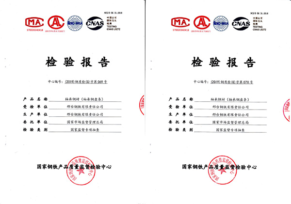 受國家市場監(jiān)督管理總局委托,2019年11月國家鋼鐵產(chǎn)品質(zhì)量監(jiān)督檢驗(yàn)中心對邢鋼高碳鉻軸承鋼進(jìn)行了監(jiān)督抽查,判定依據(jù)為《2019年軸承鋼材產(chǎn)品質(zhì)量國家監(jiān)督專項(xiàng)抽查方案》,現(xiàn)場抽取了2個(gè)批次盤條,近日公司收到檢測報(bào)告2個(gè),結(jié)論為:所檢項(xiàng)目符合GB/T18254-2016《高碳鉻軸承鋼》標(biāo)準(zhǔn)及抽樣方案,判定合格,報(bào)告中顯示,7大項(xiàng)29個(gè)項(xiàng)目結(jié)果全部高于該產(chǎn)品標(biāo)準(zhǔn),達(dá)到了高級優(yōu)質(zhì)鋼級別水平。