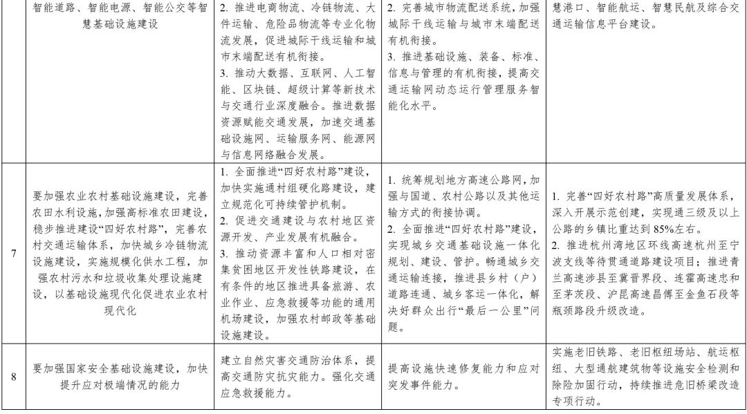 中央財(cái)經(jīng)委員會(huì)第十一次會(huì)議要求內(nèi)容與中共中央、國(guó)務(wù)院印發(fā)的《交通強(qiáng)國(guó)建設(shè)綱要》《國(guó)家綜合立體交通網(wǎng)規(guī)劃綱要》《“十四五”現(xiàn)代綜合交通運(yùn)輸體系發(fā)展規(guī)劃》等政策文件一脈相承,并有所側(cè)重,強(qiáng)化了交通、能源、水利、城鎮(zhèn)和科技等基礎(chǔ)設(shè)施在國(guó)內(nèi)國(guó)際雙循環(huán)相互促進(jìn)過程中的重要紐帶作用和產(chǎn)業(yè)鏈供應(yīng)鏈安全穩(wěn)定的保障基石作用,對(duì)構(gòu)建現(xiàn)代化基礎(chǔ)設(shè)施體系、推動(dòng)經(jīng)濟(jì)高質(zhì)量發(fā)展具有重要指導(dǎo)意義。同時(shí),兼顧了有序推進(jìn)地下綜合管廊建設(shè),加強(qiáng)城市防洪排澇、污水和垃圾收集處理體系建設(shè),加強(qiáng)防災(zāi)減災(zāi)基礎(chǔ)設(shè)施、公共衛(wèi)生應(yīng)急設(shè)施和國(guó)家安全基礎(chǔ)設(shè)施建設(shè);推進(jìn)重點(diǎn)水源、灌區(qū)、蓄滯洪區(qū)建設(shè)和現(xiàn)代化改造等內(nèi)容。表1為中央財(cái)經(jīng)委員會(huì)第十一次會(huì)議基礎(chǔ)設(shè)施建設(shè)有關(guān)內(nèi)容與相關(guān)政策文件對(duì)照。