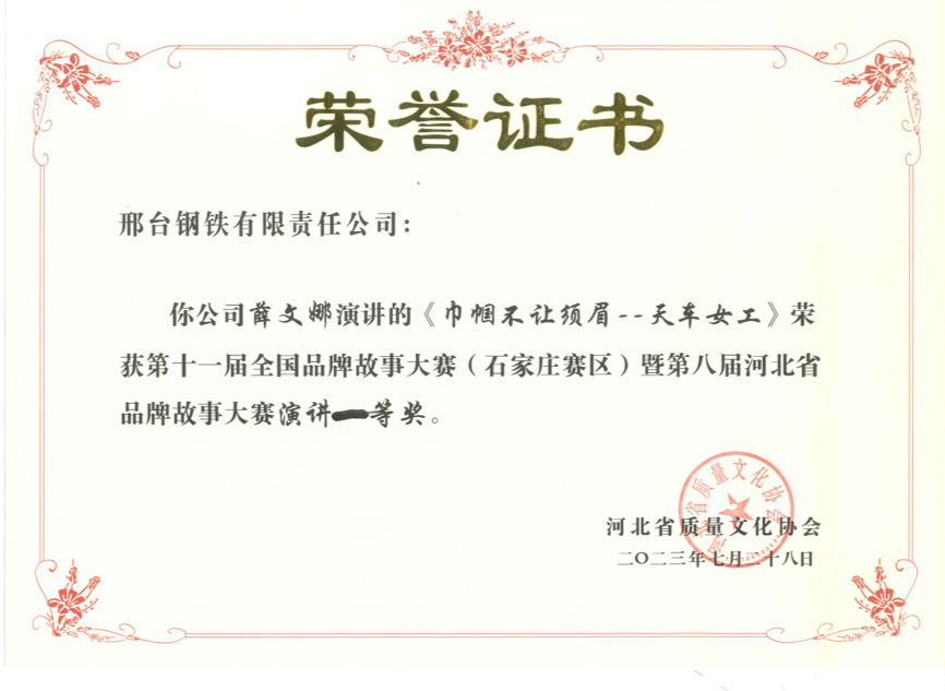 大賽分演講、征文、短視頻、微電影四個(gè)板塊,共有170余個(gè)作品進(jìn)入決賽。通過層層角逐,邢鋼品牌故事系列作品再獲佳績:其中,《巾幗不讓須眉——天車女工的故事》獲演講比賽一等獎(jiǎng),《三人行,事遂功成》獲演講比賽二等獎(jiǎng);《小小扭力桿,安全你我他》《三人行,走在精品之路上》《鏗鏘玫瑰,空中獨(dú)舞》獲征文比賽二等獎(jiǎng),《星火燎原,邢鋼精神永相傳》獲征文比賽三等獎(jiǎng);《長風(fēng)破浪,未來可期》獲短視頻三等獎(jiǎng)。